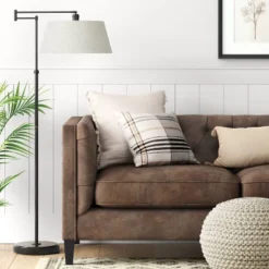 Introduce soft lighting and modern style into your decor with this Brass Floor Lamp from Threshold™. This floor lamp is designed with a slim metal column atop a round pedestal base and a downward-facing round glass shade for a stylish look that blends effortlessly with any decor style. Easy to operate with a one-way light setting, simply place it next to a sofa or in your dining room to light up your space in style.