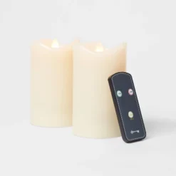 2pk 3″ X 3″ LED Flameless Black Wick Candle Cream – Threshold™